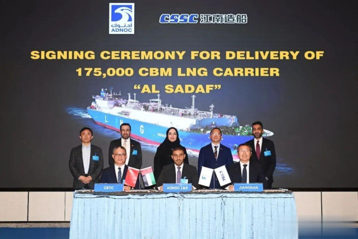 12月10日,江南造船(集团)有限责任公司为阿布扎比国家石油公司(ADNOC)建造的大型Mark III Flex薄膜式LNG运输船系列船第四艘船“AL SADAF”举行命名交付仪式。